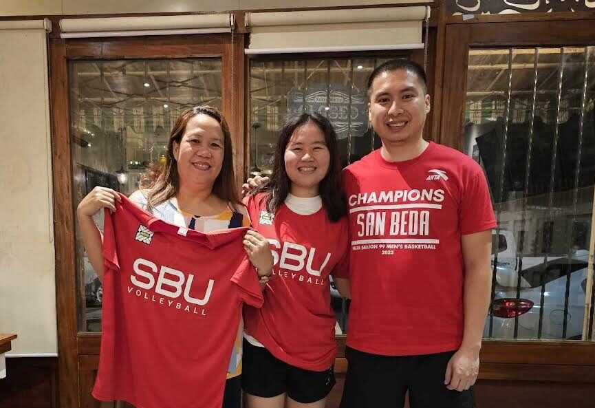 ![Patricia Grace Hiponia (center) along with her mother Grace (left) and San Beda University Lady Red Spikers assistant coach Ray Rosales (right). Photo courtesy of San Beda Lady Red Spikers. [PR photo]](http://sportsbytes.com.ph/wp-content/uploads/2024/01/0-e1704261547833.jpg)