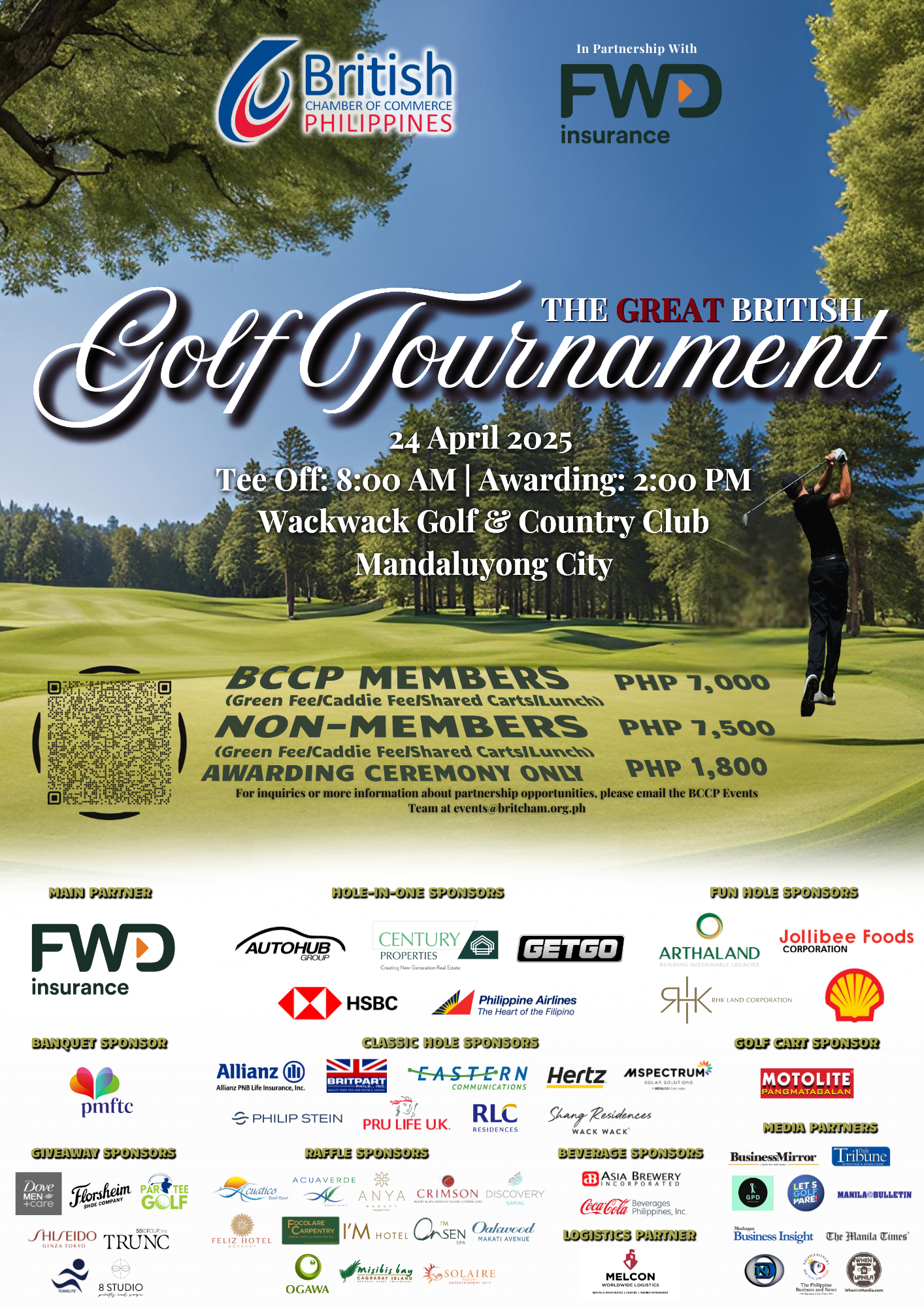 The British Chamber of Commerce Philippines is once again bringing together professionals, industry leaders, and sports enthusiasts for a day of meaningful engagement at the annual GREAT British Golf Tournament with FWD, taking place on April 24, 2025, at the iconic Wack Wack Golf & Country Club in Mandaluyong City.