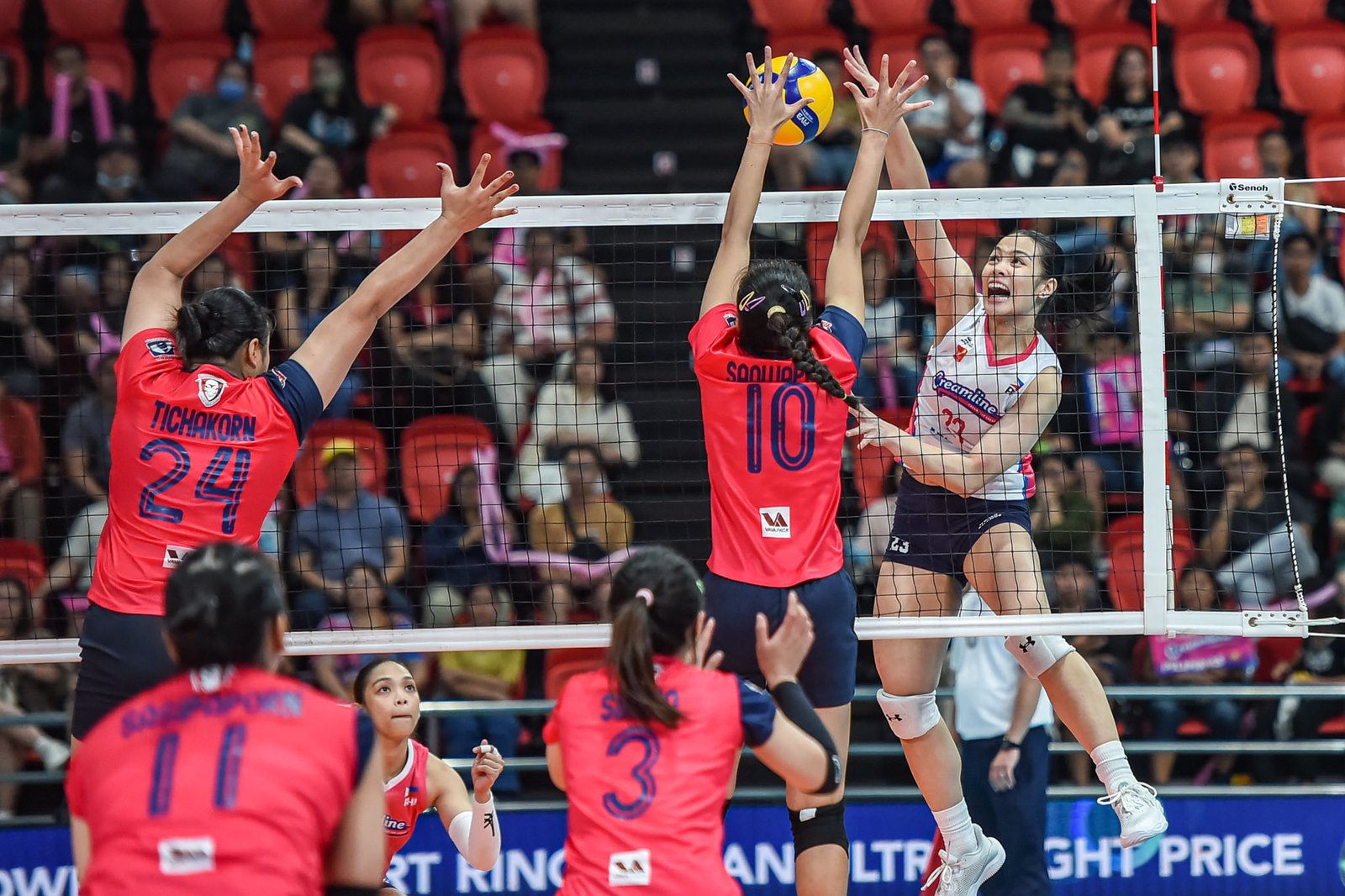 In the third set, Creamline stayed within striking distance at 9-10, but the Thais unloaded a 7-2 run highlighted by sharp kills and suffocating blocks that widened the gap and sealed the outcome.