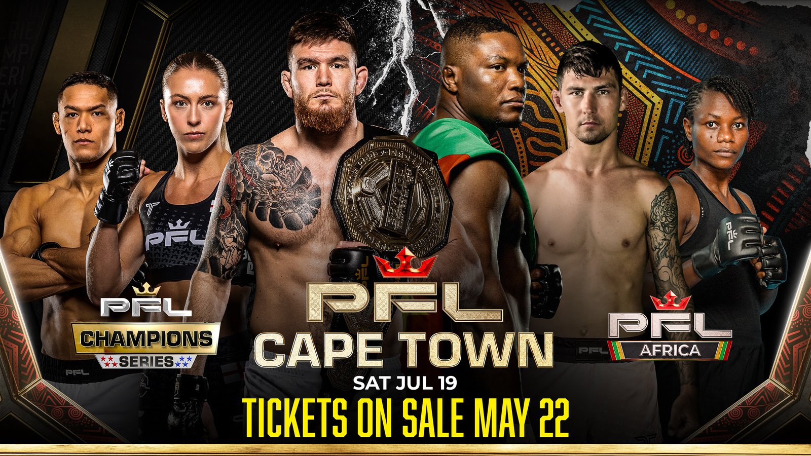 The Professional Fighters League has announced that tickets for its inaugural PFL Africa event in Cape Town will go on sale at 10:00am SAST on Thursday, May 22. Fans can be part of history by purchasing their tickets for the first global MMA event ever hosted in Africa.