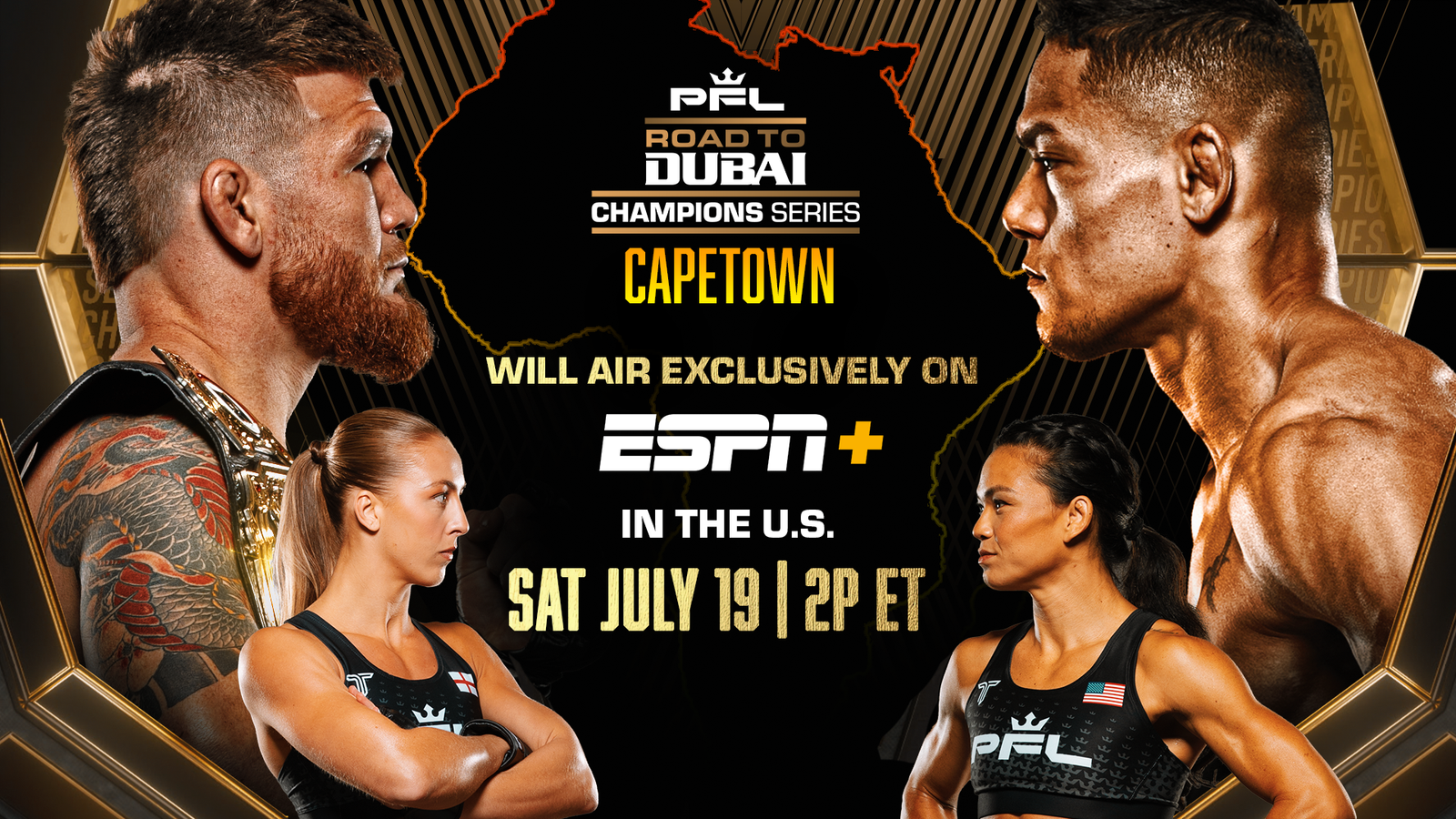 ESPN+ – PFL Champions Series Road to Dubai: Cape Town Saturday, July 19 | 2:00 PM EST