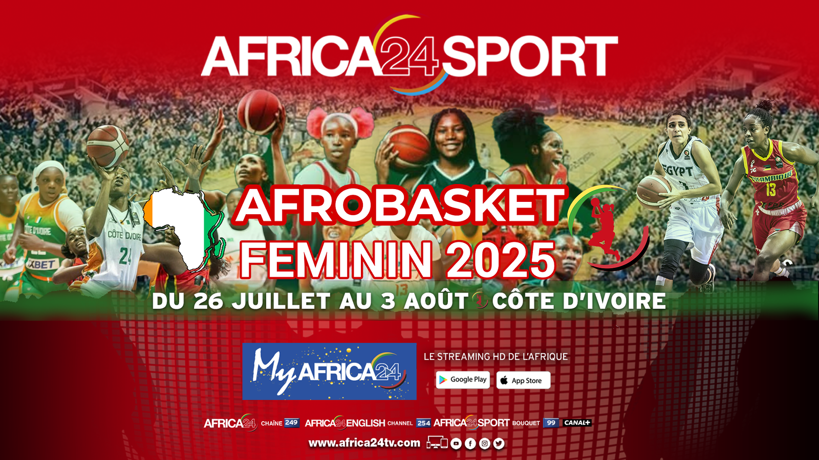 Africa24 Group, the leading pan-African media network and broadcaster of four HD channels, will deliver exclusive coverage of the 2025 Women’s AfroBasket in Côte d’Ivoire from July 26 to August 3. This marks a significant milestone as Africa’s top 12 women’s basketball teams battle for the continent’s most prestigious title.