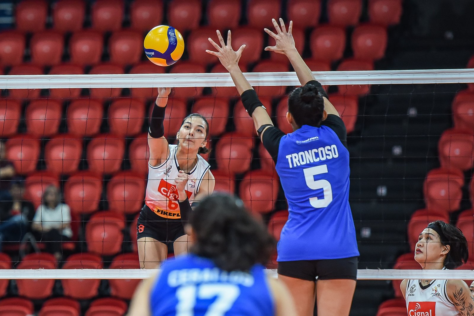 The Thunderbelles, missing several key players including Jovelyn Gonzaga and Thea Gagate, still showed fight behind Chai Troncoso (16 points) and Kate Santiago (14). But Cignal’s depth proved too much as they pulled away in the last three sets.