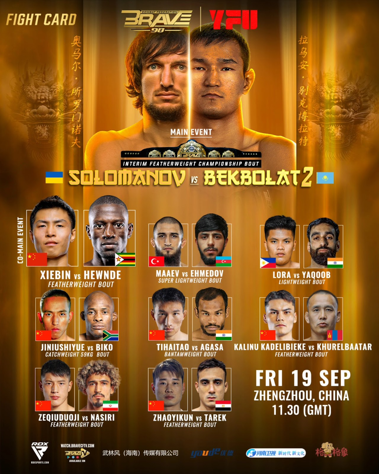 Beyond the co-main, BRAVE CF 98 will highlight seven additional bouts featuring emerging Chinese fighters eager to prove themselves against elite international opposition. For many, it is not just another fight but a benchmark against the world’s finest and a chance to announce their arrival on the global stage.