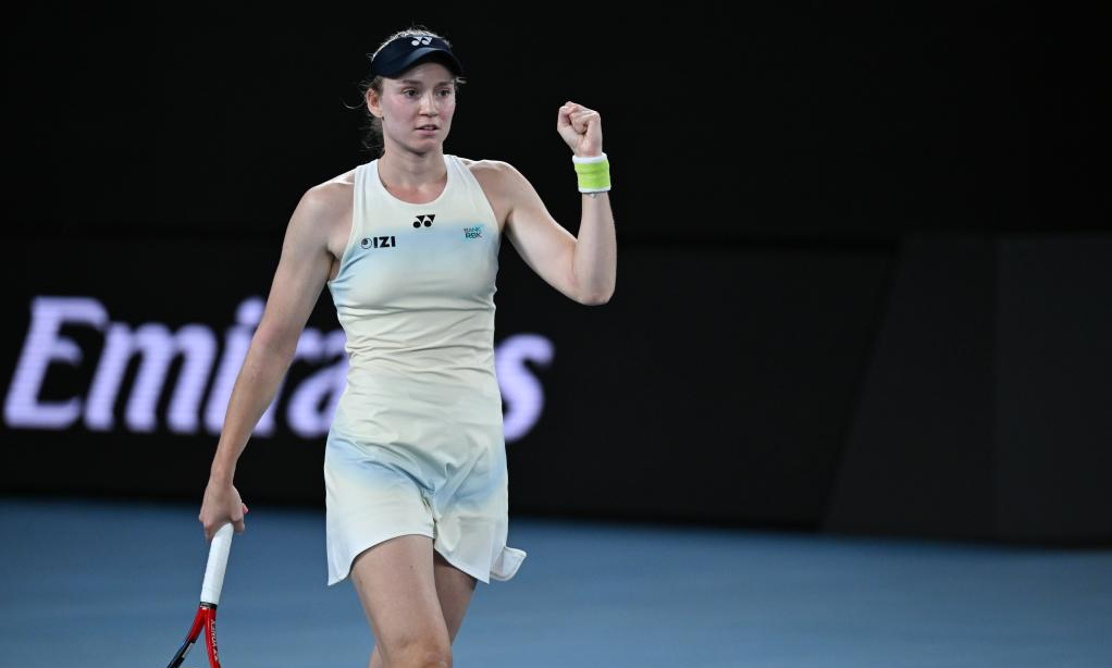 Rybakina reacts after sealing match point to reach the Australian Open final. [Xinhua photo]